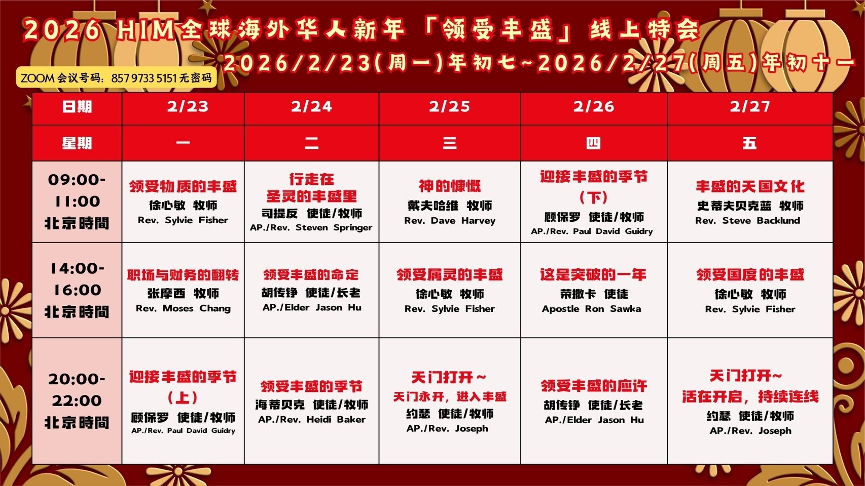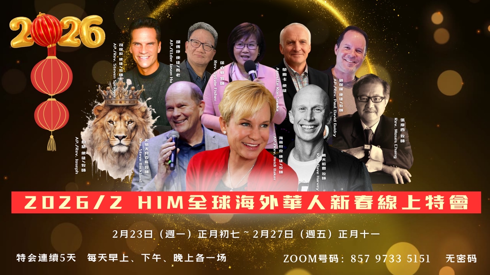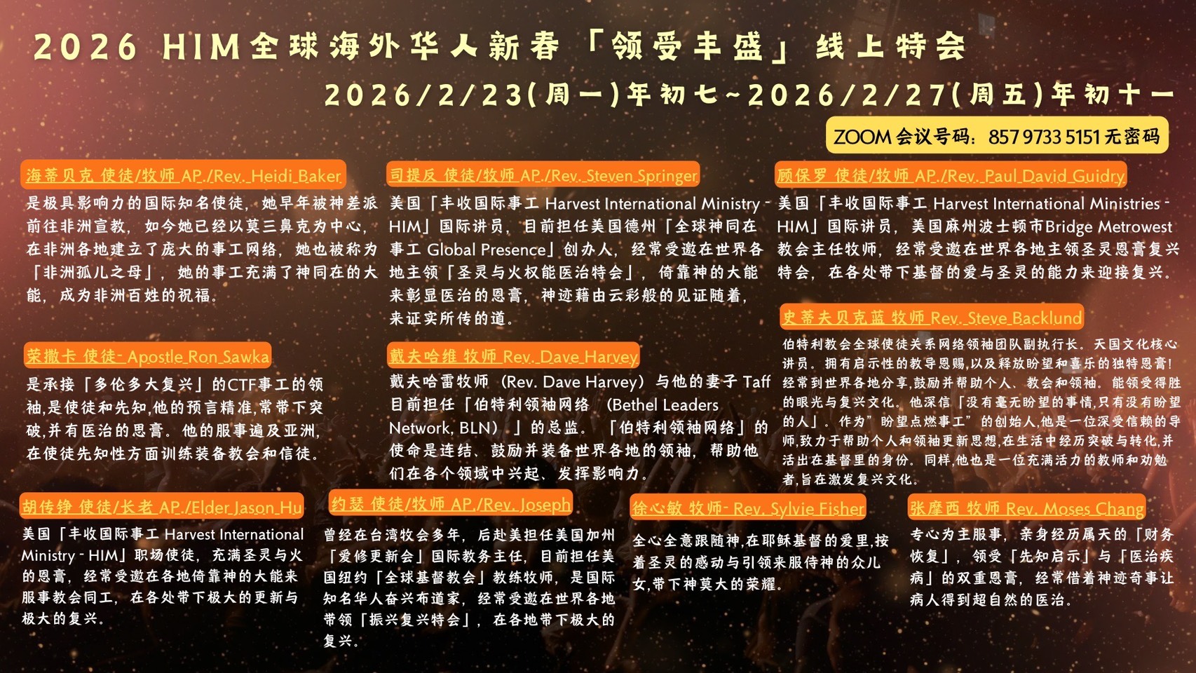 HIM 「全球海外華人春節線上特會」安排了10位國際知名的講員來為大家服事