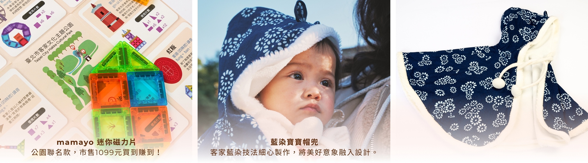 我們特別設計「客家藍染寶寶帽兜」,作為獻給孩子的一份祝福。