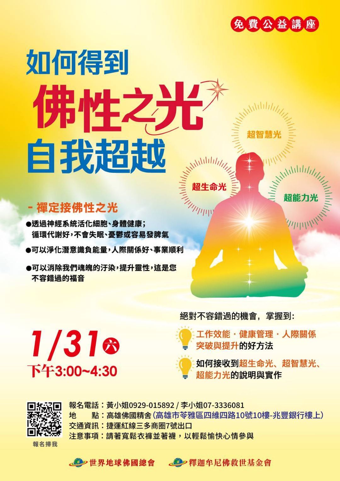 講座內容:超越的力量-佛性之光、禪宗法脈傳承、靜下心來-基礎禪定