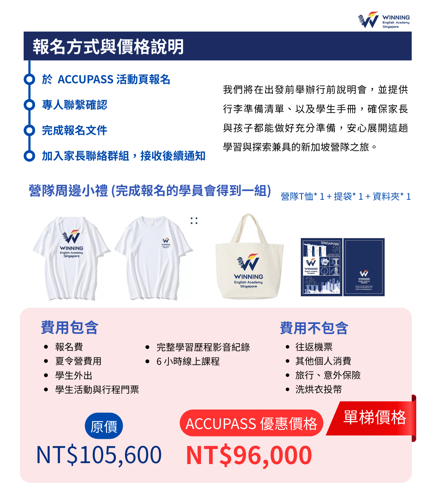 - 本夏令營報名費用包含:報名費、夏令營費用、學生外出、學生活動與行程門票、完整學習歷程影音紀錄、6 小時線上課程。不包含:往返機票、其他個人消費、旅行保險、洗烘衣投幣等個人費用。