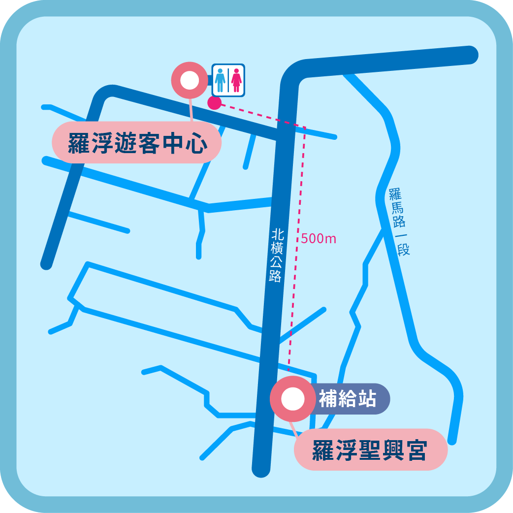 - 羅浮聖興宮補給站:洗手間距離約500公尺(羅浮遊客中心)