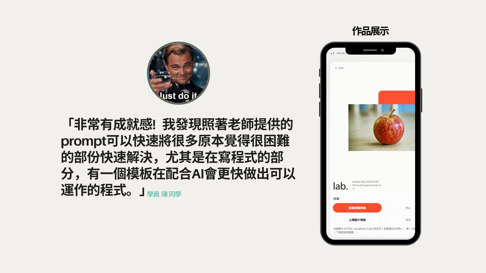 平靜地說:「這個,是我用 AI 做出來的。」