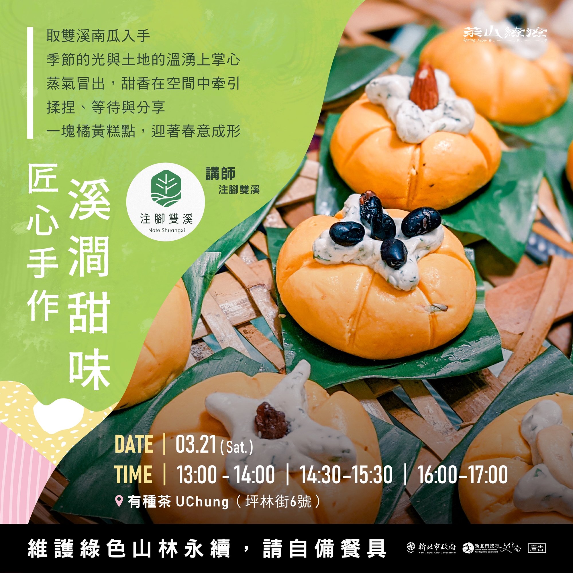 以季節食材與山林香氣為核心,邀請親子一同體驗製作南瓜糕DIY活動,