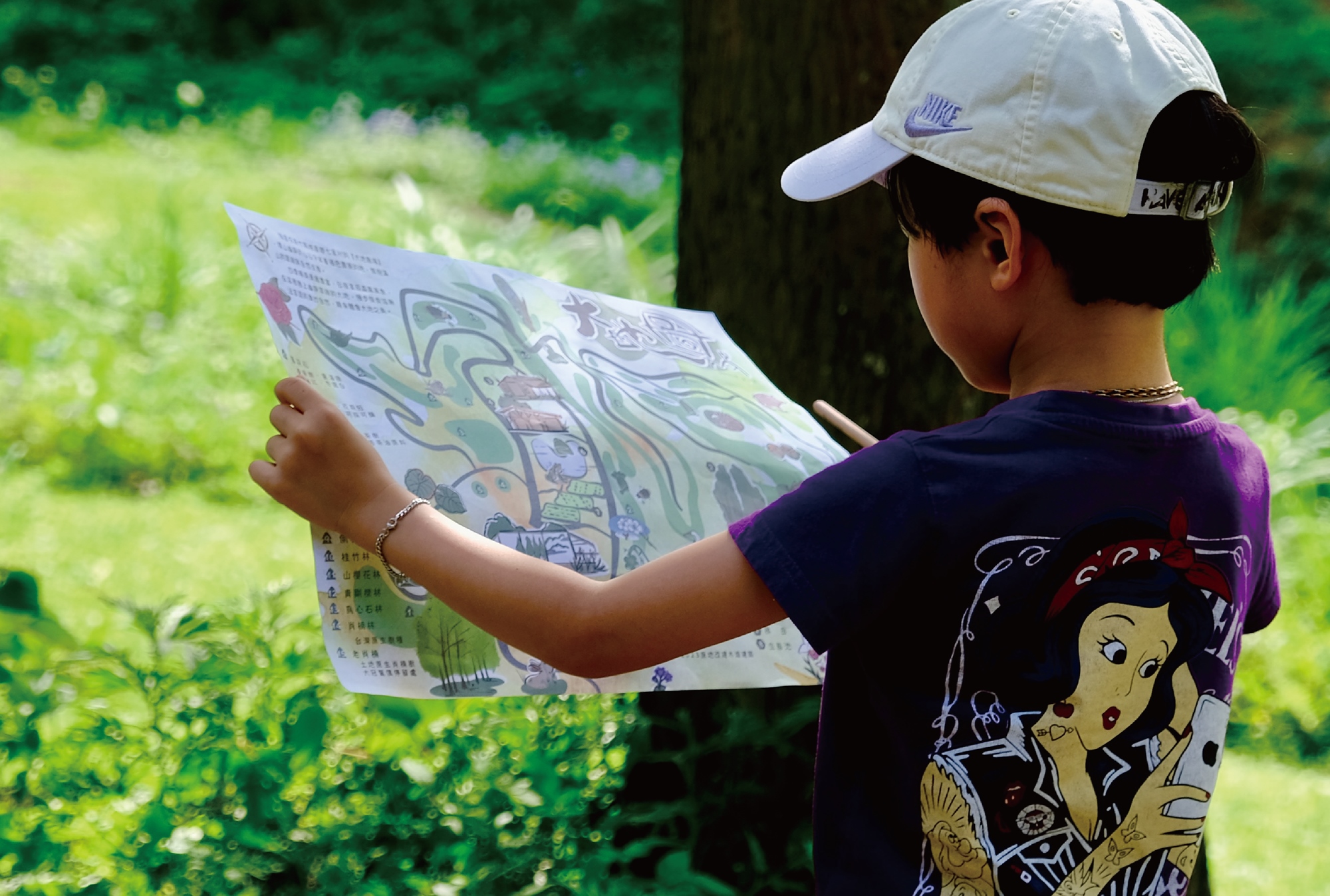 白天,能採梅子、折竹筍,穿行林間小徑,拿著地圖尋找大地小精靈的線索。