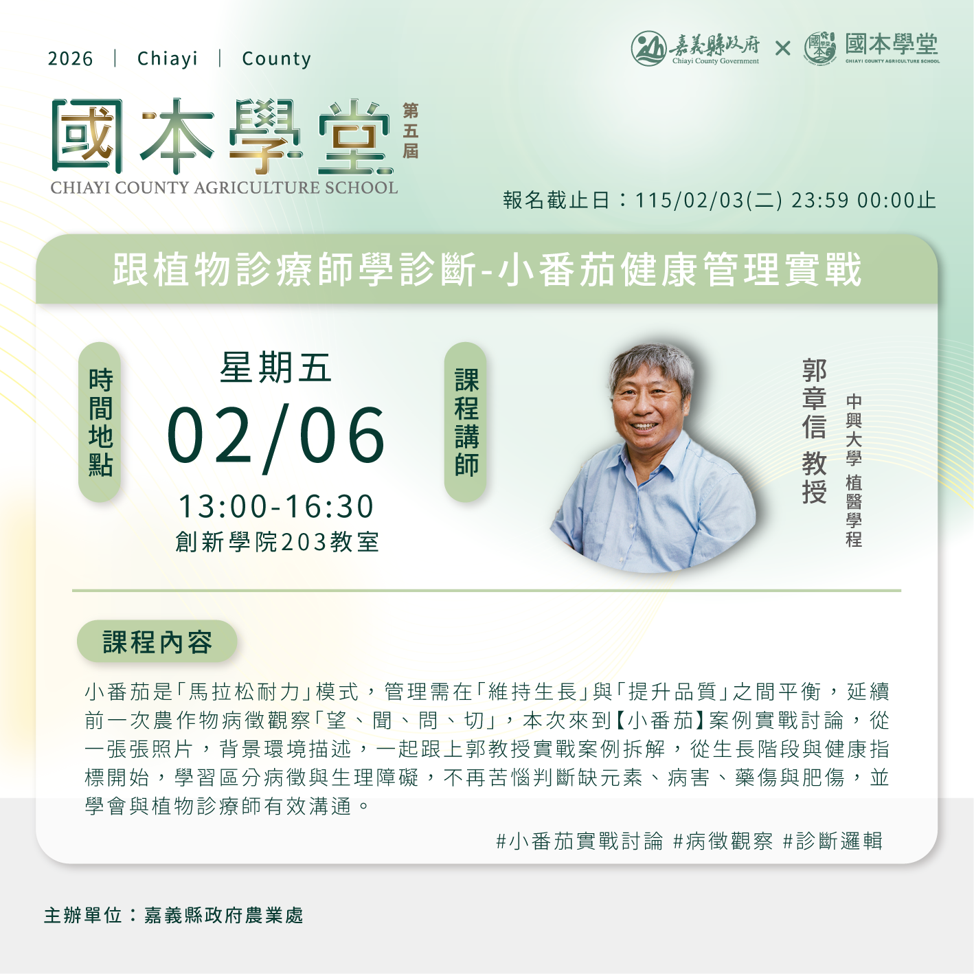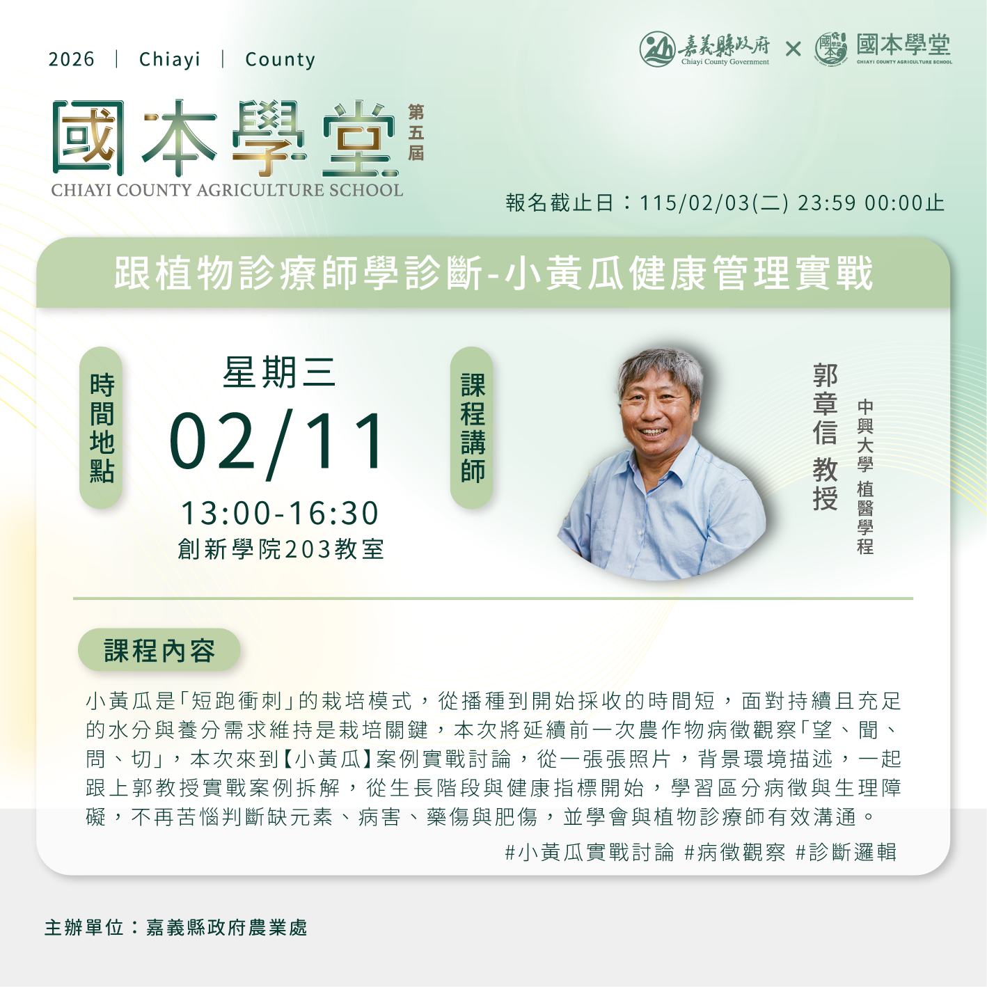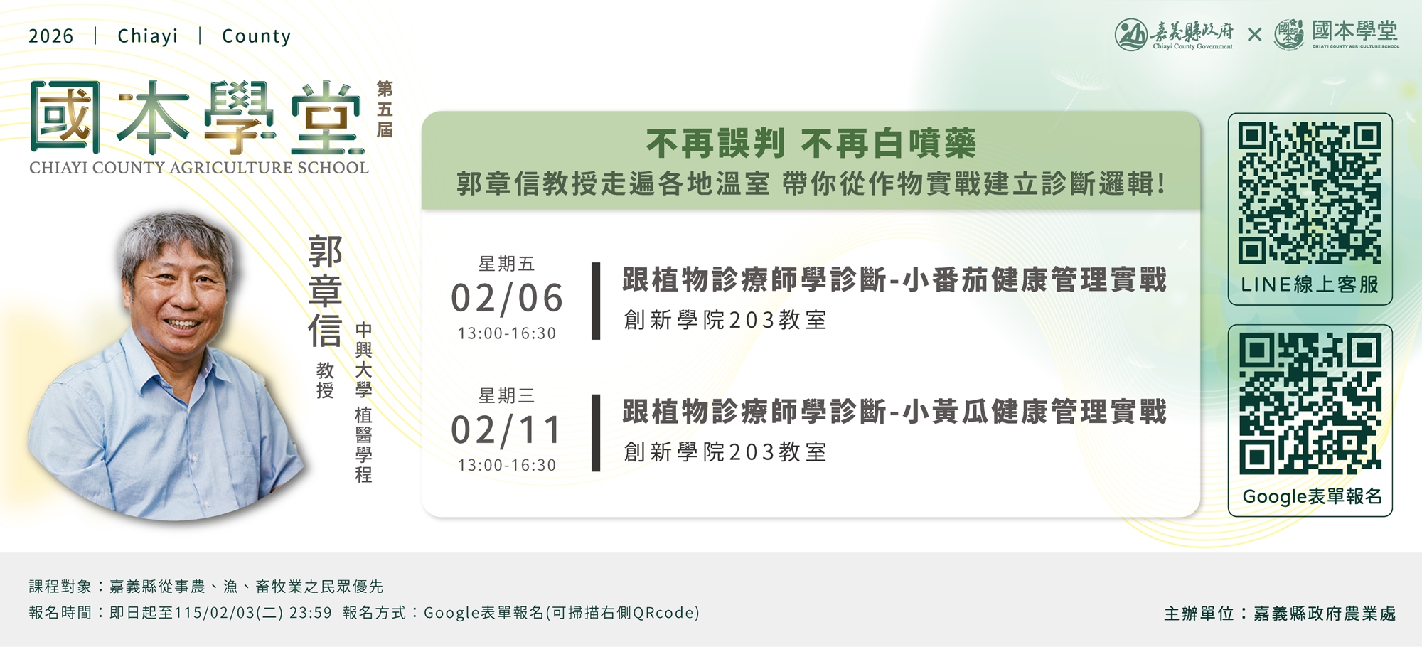 ▶課程以嘉義縣從農者優先錄取,資料送出即完成報名程序。