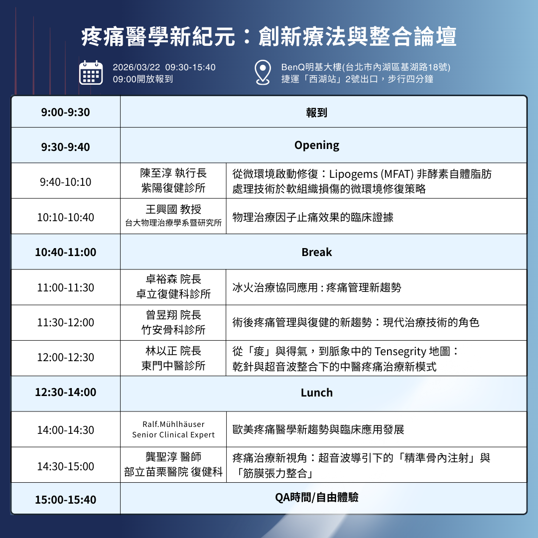 【疼痛醫學新紀元:創新療法與整合論壇 | 華鋒科技2026年春季論壇】