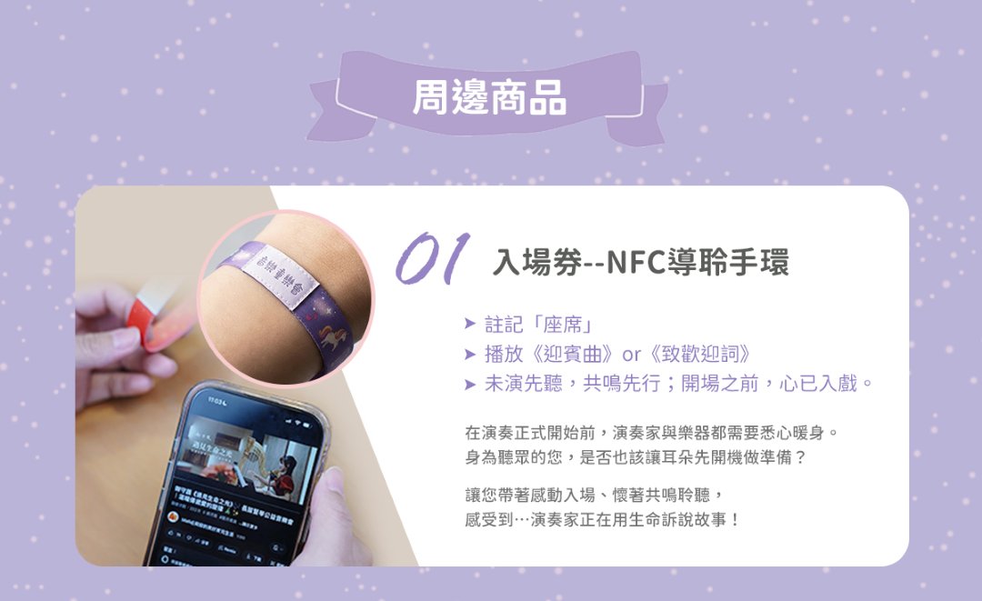 更導入 NFC 音樂互動體驗,從導聆手環、聽得見的節目單...到演出後仍能重溫的樂音記憶,讓感動不只停留在當下,而是一路陪你回家。