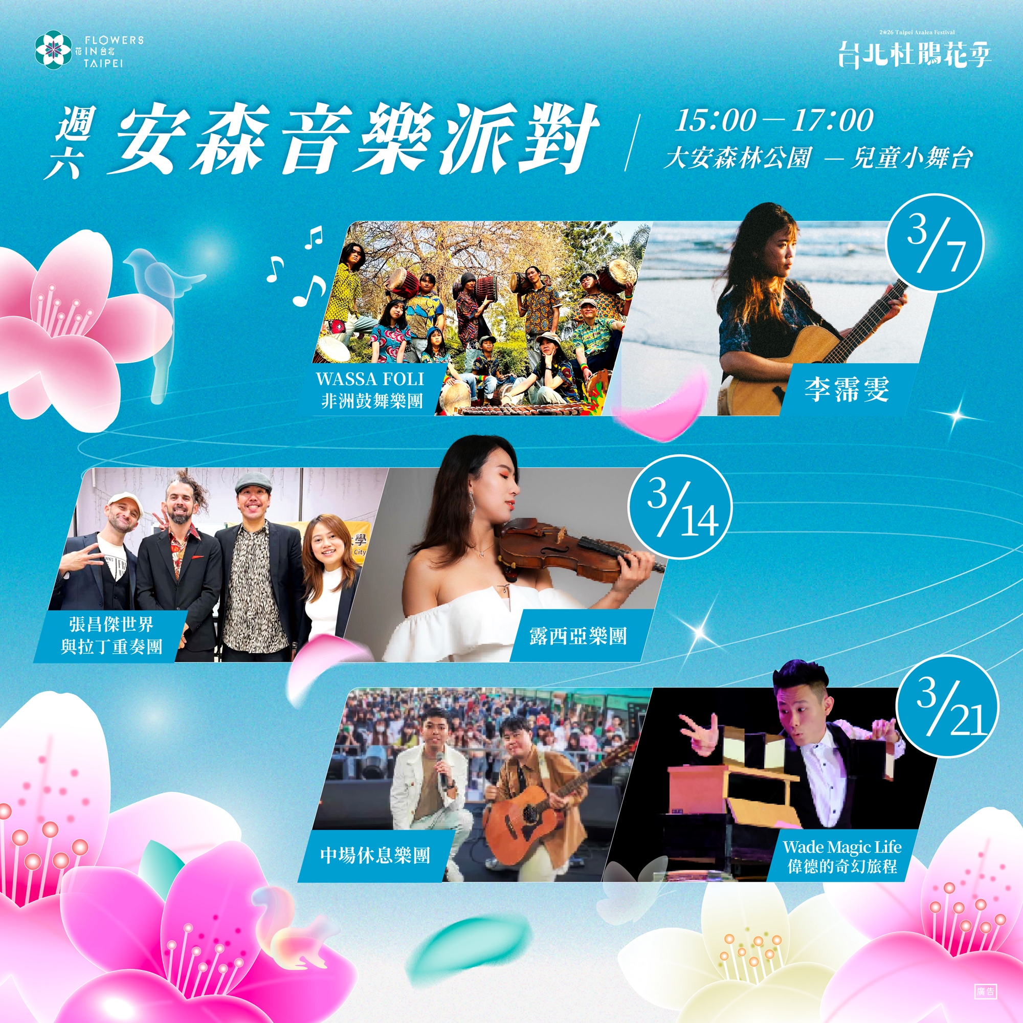 大安森林公園-兒童小舞台 拾花號|台北市大安區新生南路二段1號;青年公園-綠化教室|台北市萬華區水源路199號