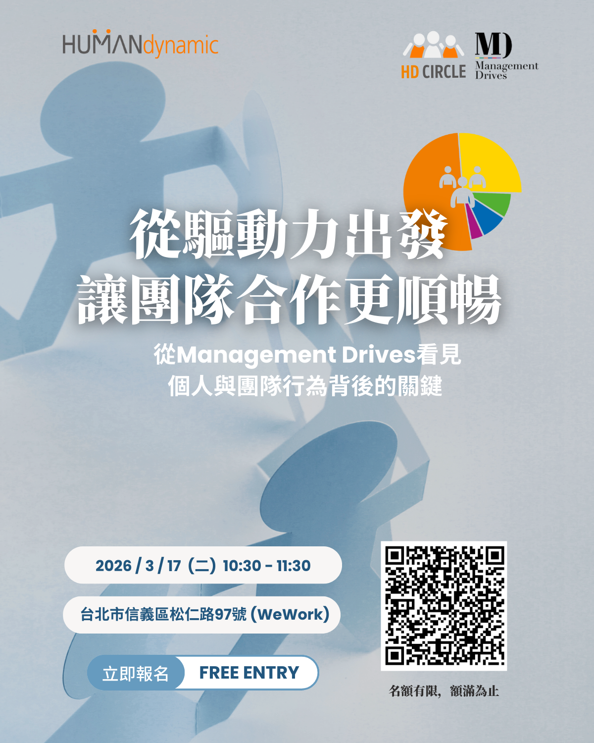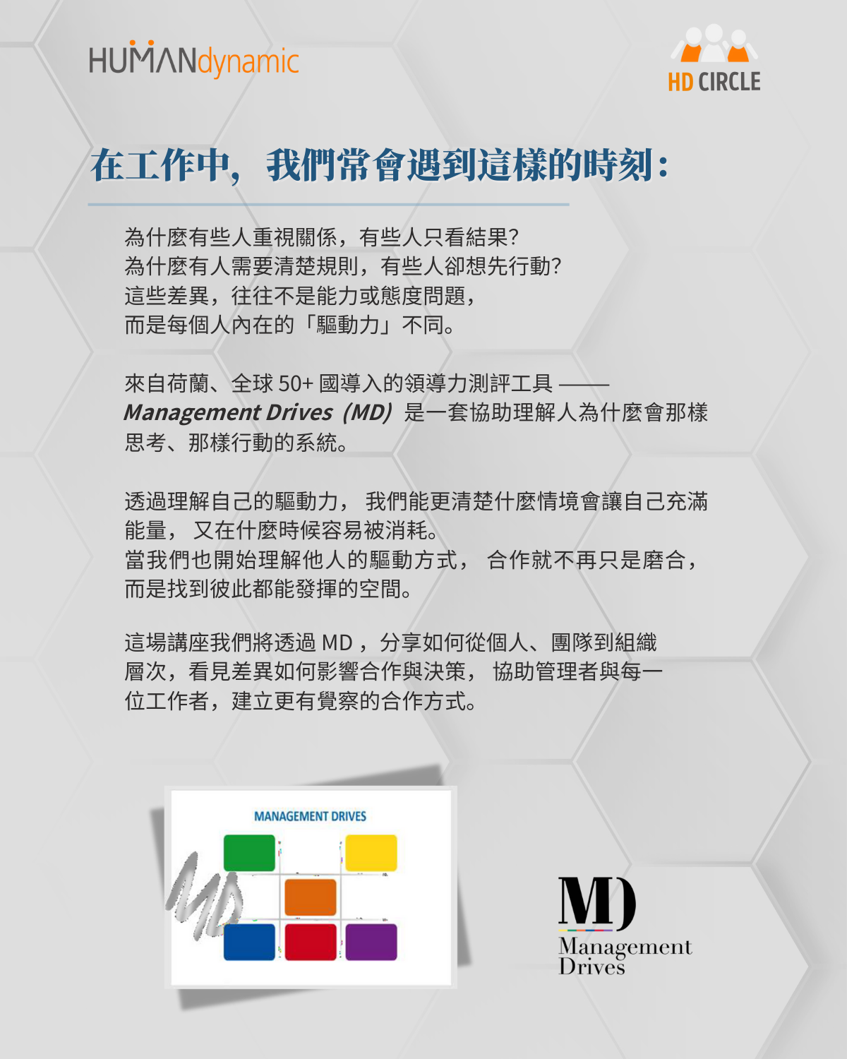 在本次 HD Circle 講座中,我們將介紹來自荷蘭、已於全球 50+ 國導入的領導力測評工具— Management Drives