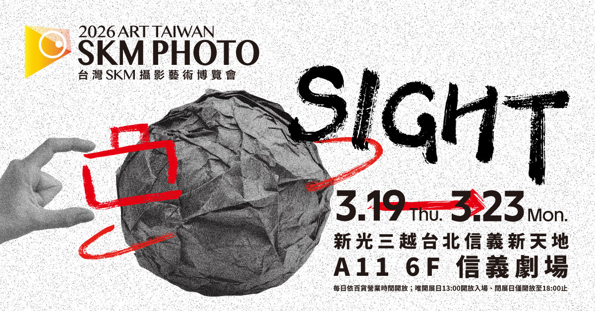 年度國際攝影盛會-2026 ART TAIWAN|SKM PHOTO 攝影藝術博覽會3/19-3/23@新光三越台北信義新天地A11 6F盛大開展!今年以「Möbius 凝視|倒影的邊界」為主題,開啟一場無限循環的影像旅程 — 今年共匯聚來自國際與台灣的優秀影像藝術創作者,包含日本攝影家-中藤毅彥 Takehiko Nakafuji、加藤秀 Kato Shu,以及台灣知名攝影師/影像團隊-何經泰、江宏仁、陳敏佳、鄭弘敬、周墨、Puzzleman、姚愛寗、朱逸文、章潔、陳怡絜、林肇圀、黃郁棠、謝明澄、財團法人黑潮海洋文教基金會x金磊、PHOTO GO 攝影上桌、哲攝、Hiponoz等超過50組參展單位共同展出;同期也將發表「2026 SKM PHOTO國際攝影大賽」、「2025 吳東興攝影贊助計畫」入選得獎作品;展期間每日舉辦多場攝影專題講座與交流活動,喜愛攝影影像藝術的朋友千萬不能錯過!》詳情請上:2026 SKM PHOTO官網查詢