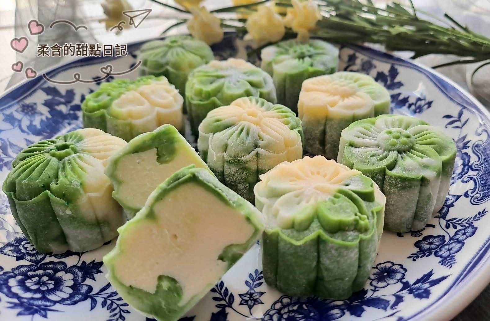 用抹茶調配白綠相間Q彈的雙色冰皮
