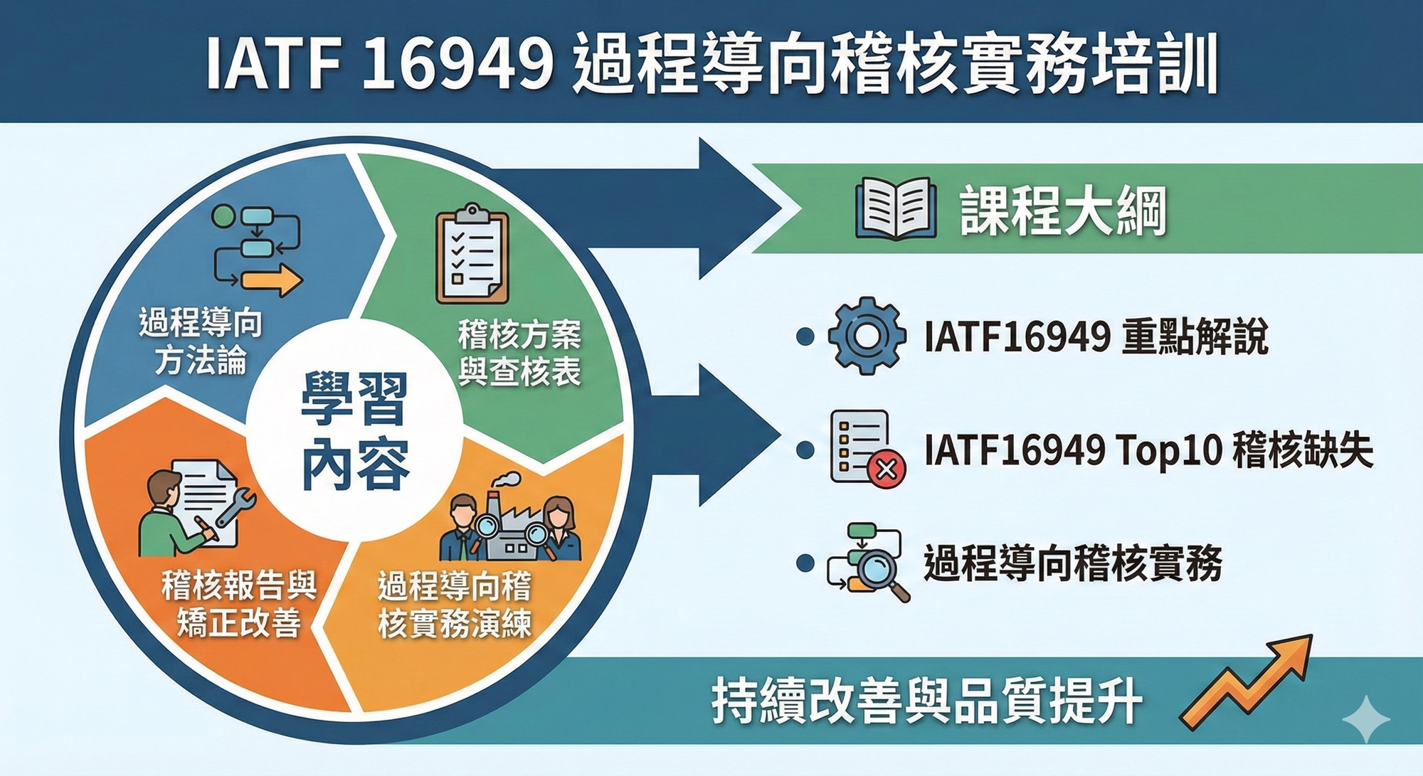 構建科學稽核架構:系統化了解過程導向方法論,具備應對多元複雜製造場景的稽核實力。