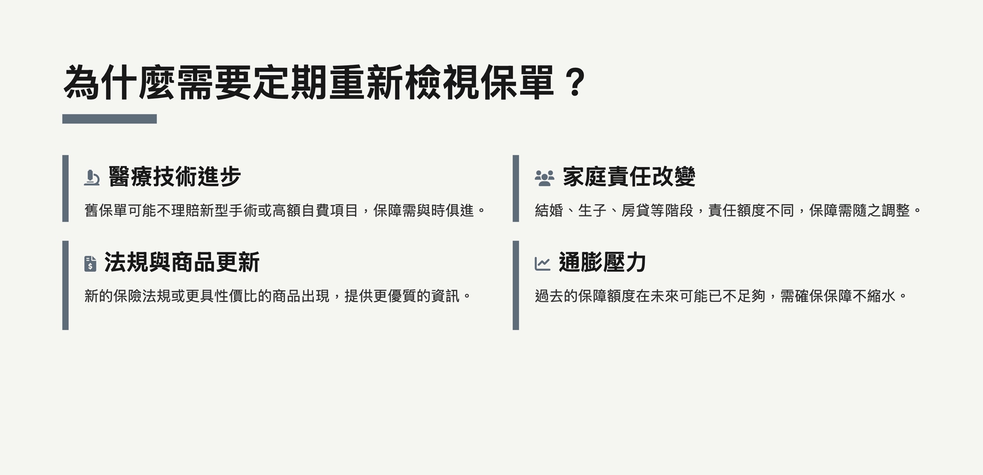 保單不是買了就放著,環境與需求會隨時間改變