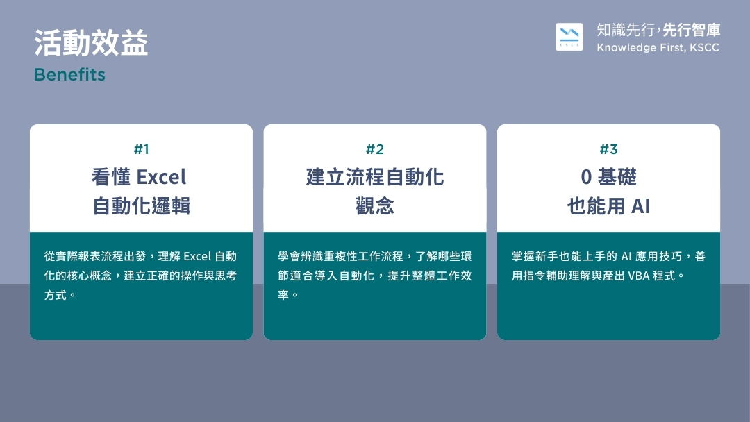 活動中也會分享哪些報表適合自動化,以及從手動轉為自動的實際做法,協助你減少重工、提升效率。