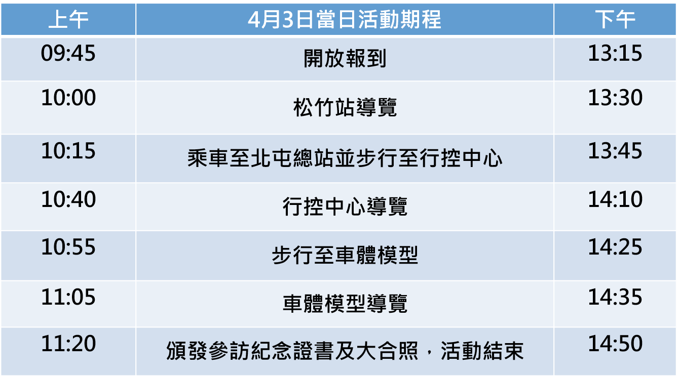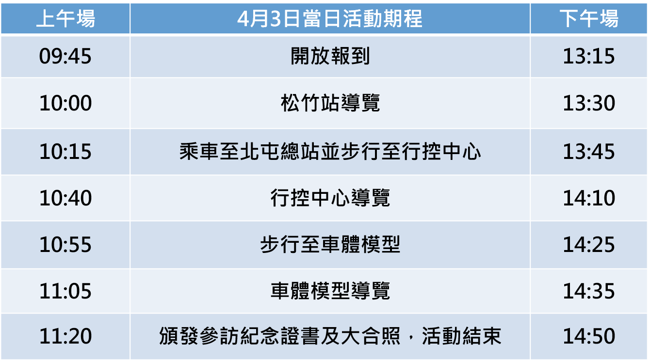 本次活動於115年4月3日(星期五)分為上下午各1場次,可選擇您適合的時段報名,為維持參觀品質: