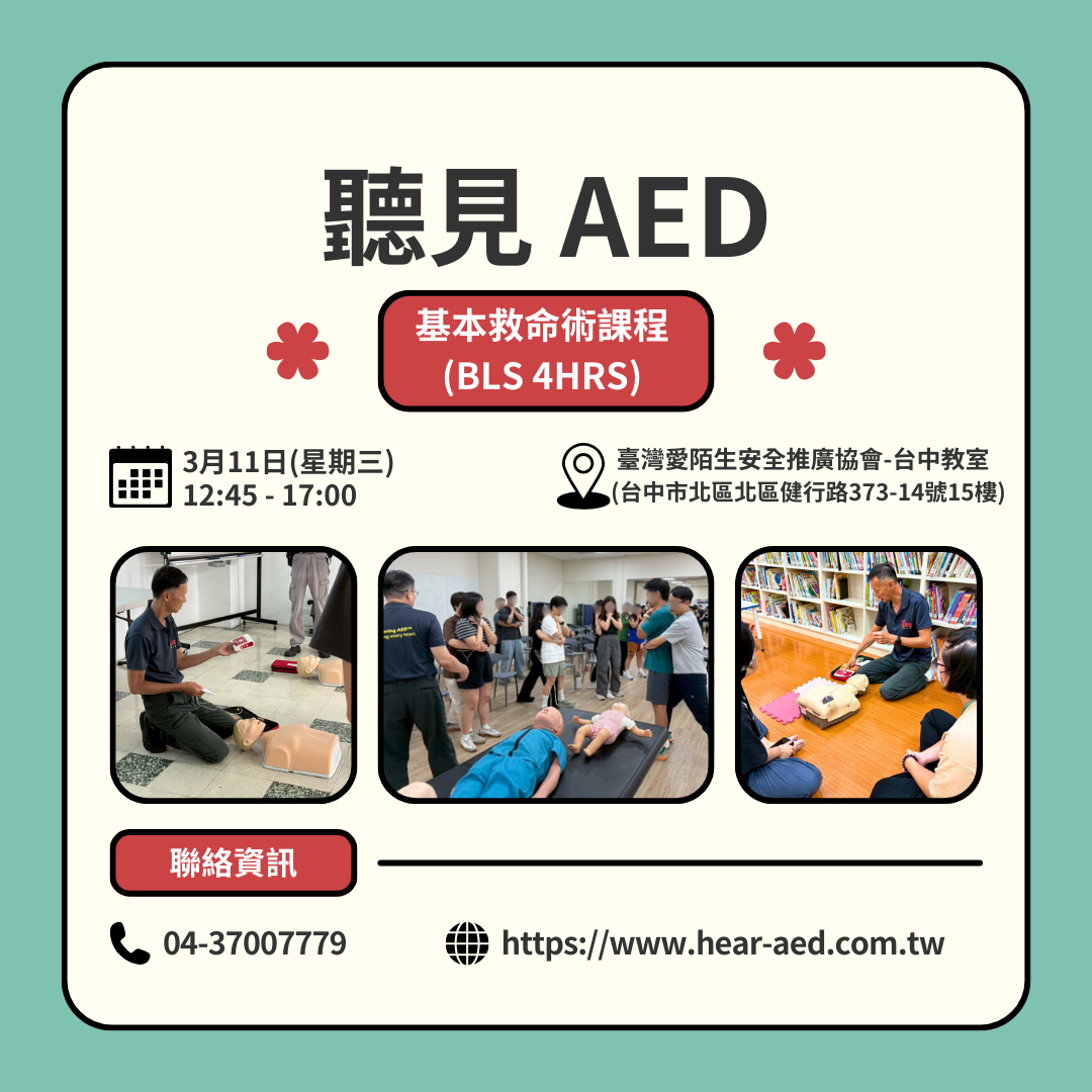BLS課程讓你學會系統化急救技能,從CPR到AED,提升應變力。
