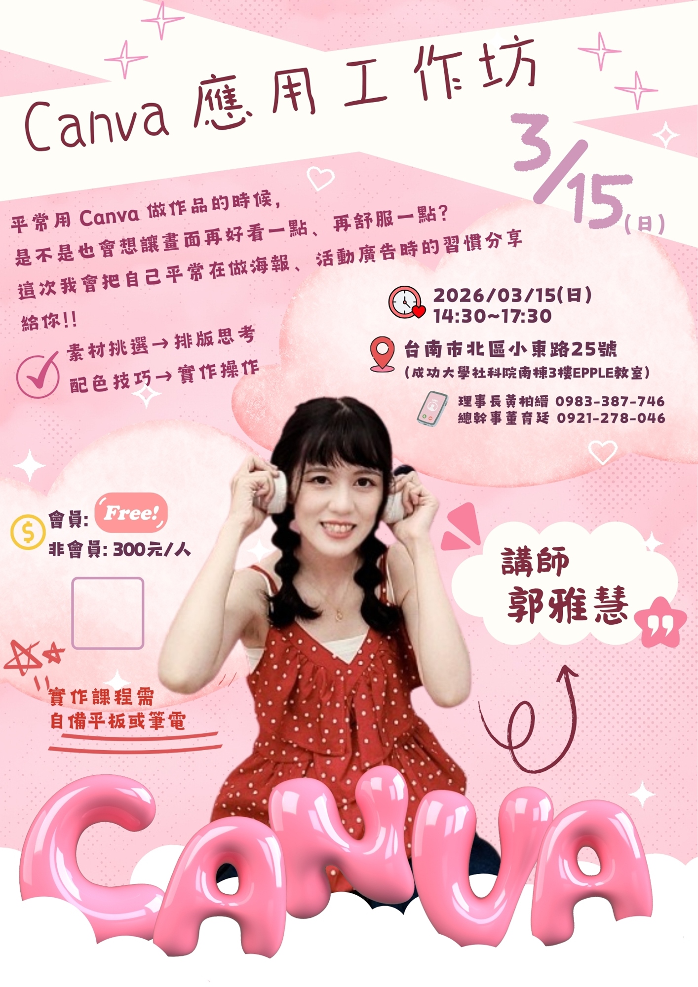 📍 活動地點: 台南市北區小東路25號(成功大學社科院南棟 3 樓 EPPLE 教室)