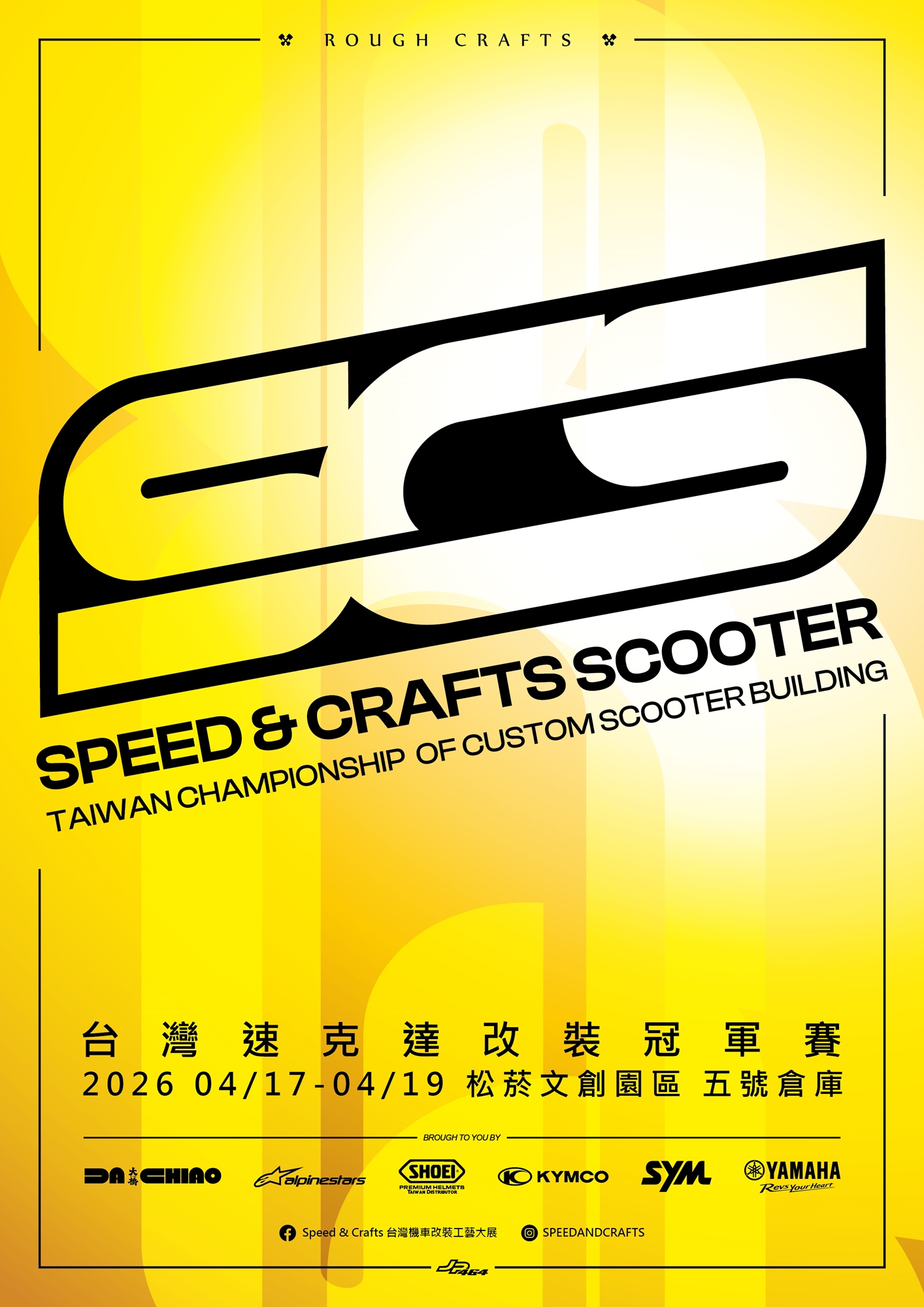 全球速克達改裝界迎來 2026 年度巔峰盛會——台灣速克達改裝冠軍賽 Speed & Crafts Scooter (SCS)。本賽事由 Rough Crafts 主理人、世界冠軍改裝大師 葉韋廷(Winston Yeh)親自操刀,正式揭開 Speed & Crafts 的嶄新篇章,首度將目光聚焦於速克達改裝領域,旨在打造全球規格最完整的速克達競技舞台,將機車改裝工藝推向國際新高度。為期三天的賽事與工藝大展,競賽項目分為「競技組」與「無限組」。本屆獲勝者除了能將國際品牌提供的頂級車款作為冠軍獎項直接帶回家,更重磅加碼由 MotoGP 御用大師 Kaos Graphics 親自操刀彩繪的兩頂SHOEI「黃金安全帽」,作為冠軍王者的至高加勉,這不僅象徵改裝領域的榮譽,更深刻體現了工藝、美學與性能結合的極致精神。