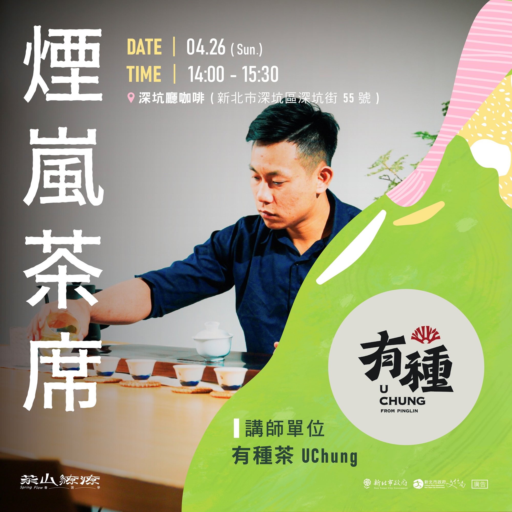 活動邀請有種茶UChung,介紹綠色山林廊帶上的茶文化故事,並於活動中讓民眾體驗茶席,品飲坪林茶的清香甘甜,感受療癒與靜心,享受春天與茶共舞的協奏曲。