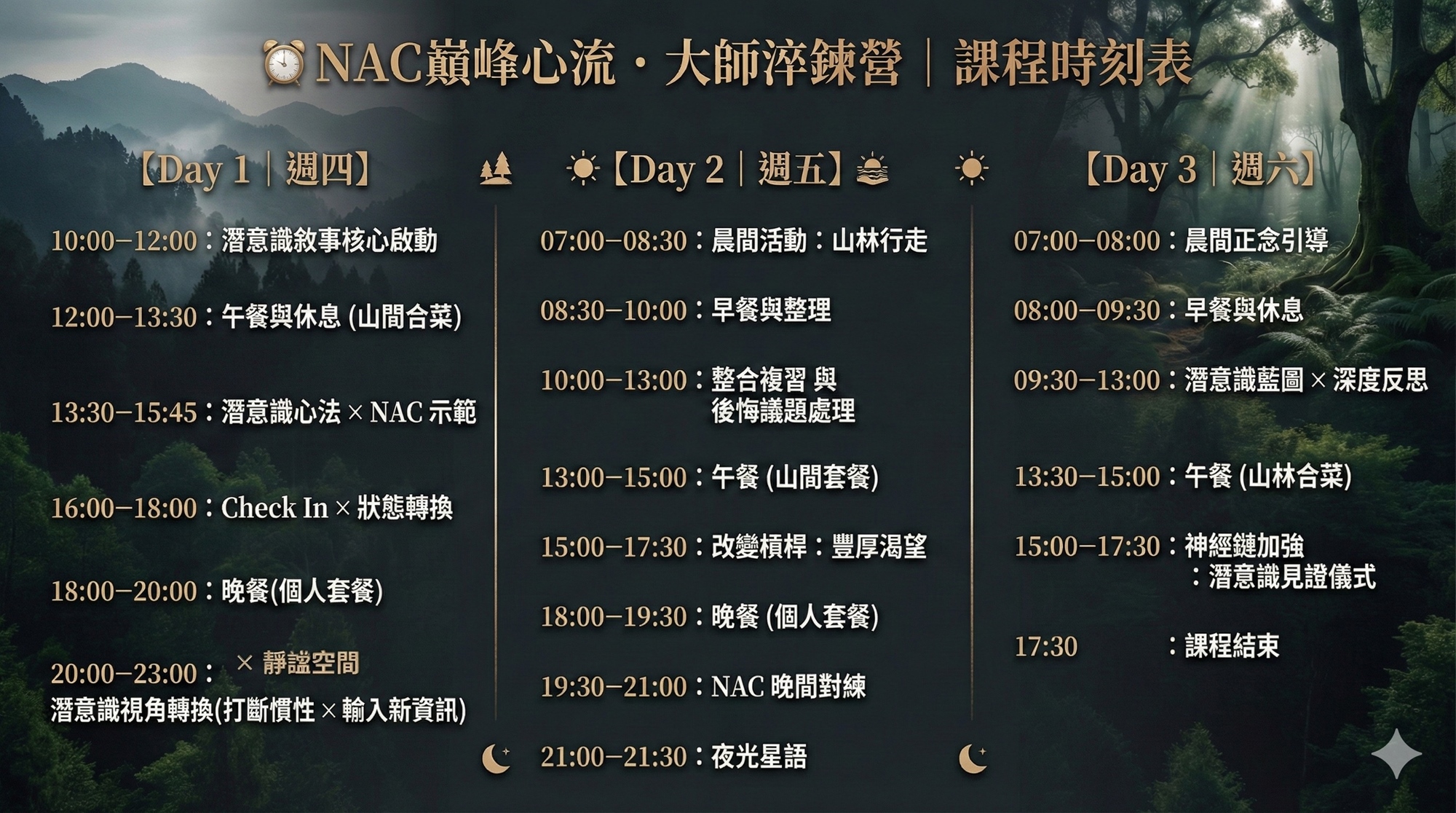 課程形式|三天兩夜沉浸式課程(費用包含全程精緻食宿)