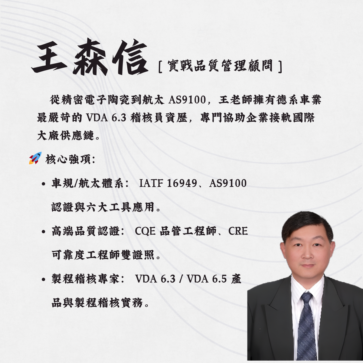 🔬 專攻領域: #IATF16949五大工具 #VDA6.3稽核 #8D問題分析 #5WHY分析 #可靠度工程 #流程改善