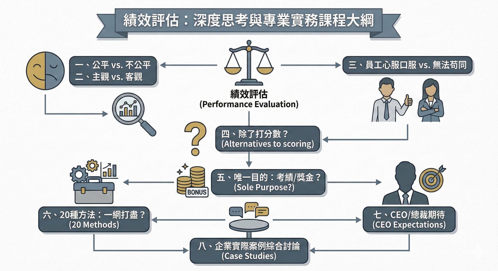徹底解決評價瓶頸:透過實際案例討論,解開主觀偏見、分數膨脹等長期困擾企業的難解之題。