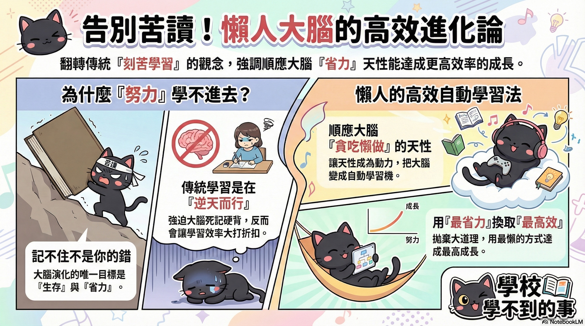 人類的大腦演化了幾百萬年,唯一的目標就是「生存」與「省力」。 所以,記不住不是你的錯,是你太乖了,一直在逆天而行。 這次講座,我們不談大道理,只教你如何順應「貪吃懶做」的天性,把大腦變成你的自動學習機。 讓我們用最懶的方式,換取最高效的成長!🐾
