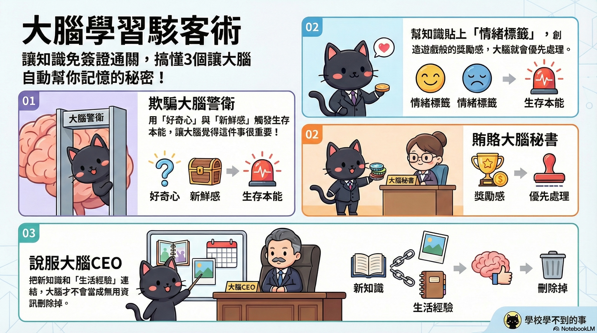 無聊的知識會被大腦丟進垃圾桶。我們會練習如何幫知識貼上「情緒標籤」,讓學習過程變得像打遊戲一樣有「獎勵感」,讓你的杏仁核(秘書)主動幫你把知識列為急件處理!