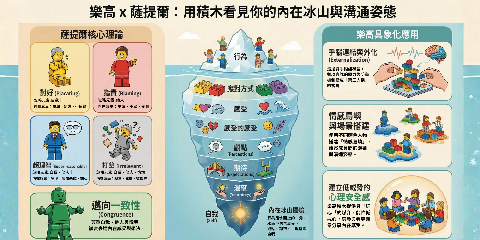 18:00 - 18:30|暖身與連結:樂高破冰,建立安全容器,認識冰山隱喻。