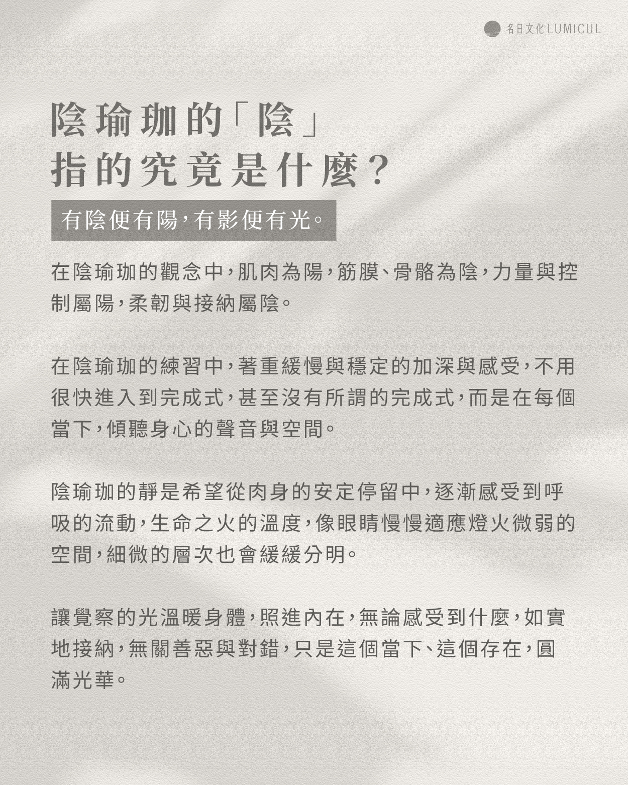 陰瑜珈的「陰」指的是什麼?