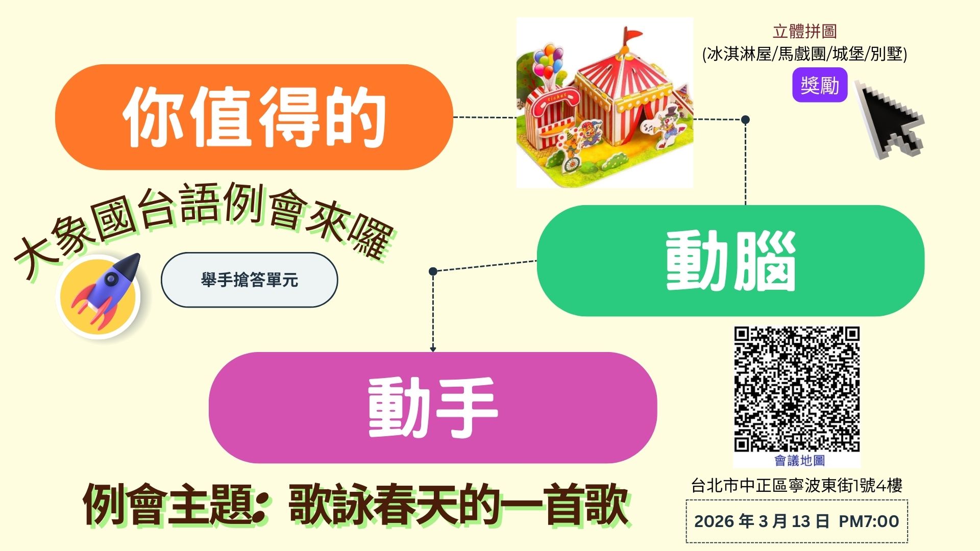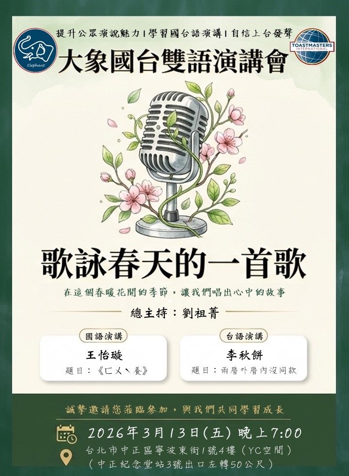 大象邀請您一同參加這場充滿笑聲與智慧的國台語例會。