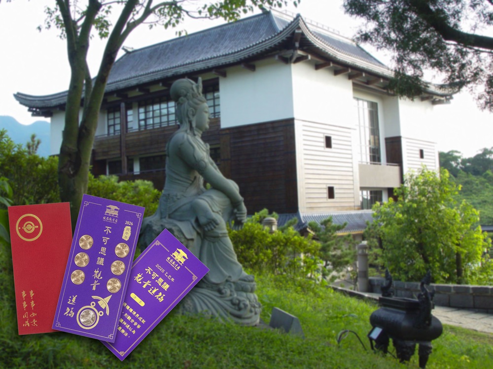 2026年的「吉祥如意平安福」,特別結合法界圖騰「非常有用」做設計,除了跨年限定限量金色款,另有年度特別色珠光紫與珠光綠款。民眾只要誠心擲出三個聖筊,即可將平安福迎回家,祈願新年財運、事業、健康皆能吉祥如意。