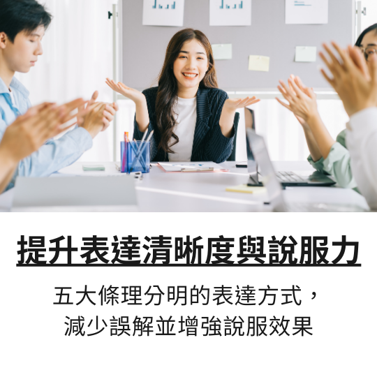 講座一:訓練邏輯表達力:建立清晰的溝通架構學習運用清晰且有條理的表達方式,調整日常溝通習慣,進而能夠減少誤解、增強說服力,真正做到有效傳達想法並促進理解。