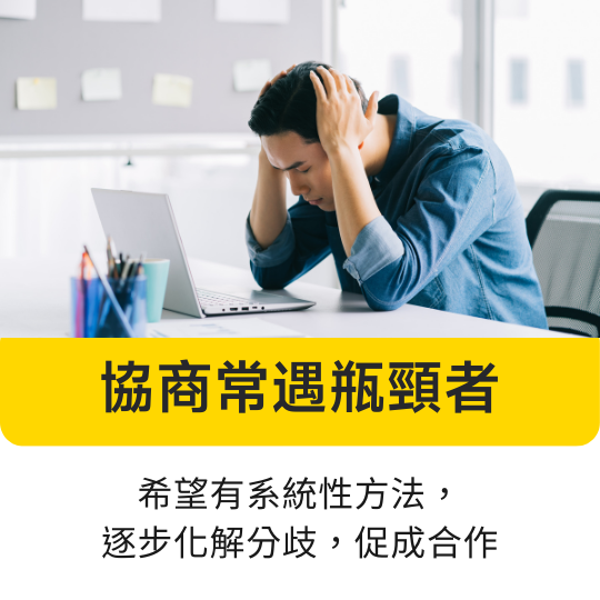 講座二:循序漸進化解分歧:引導溝通達成共識的5步驟學會創造共識的溝通技巧與步驟,處理一開口就被反對、意見分歧無法溝通的問題,最後能順利地達成共識、獲得解套結論!