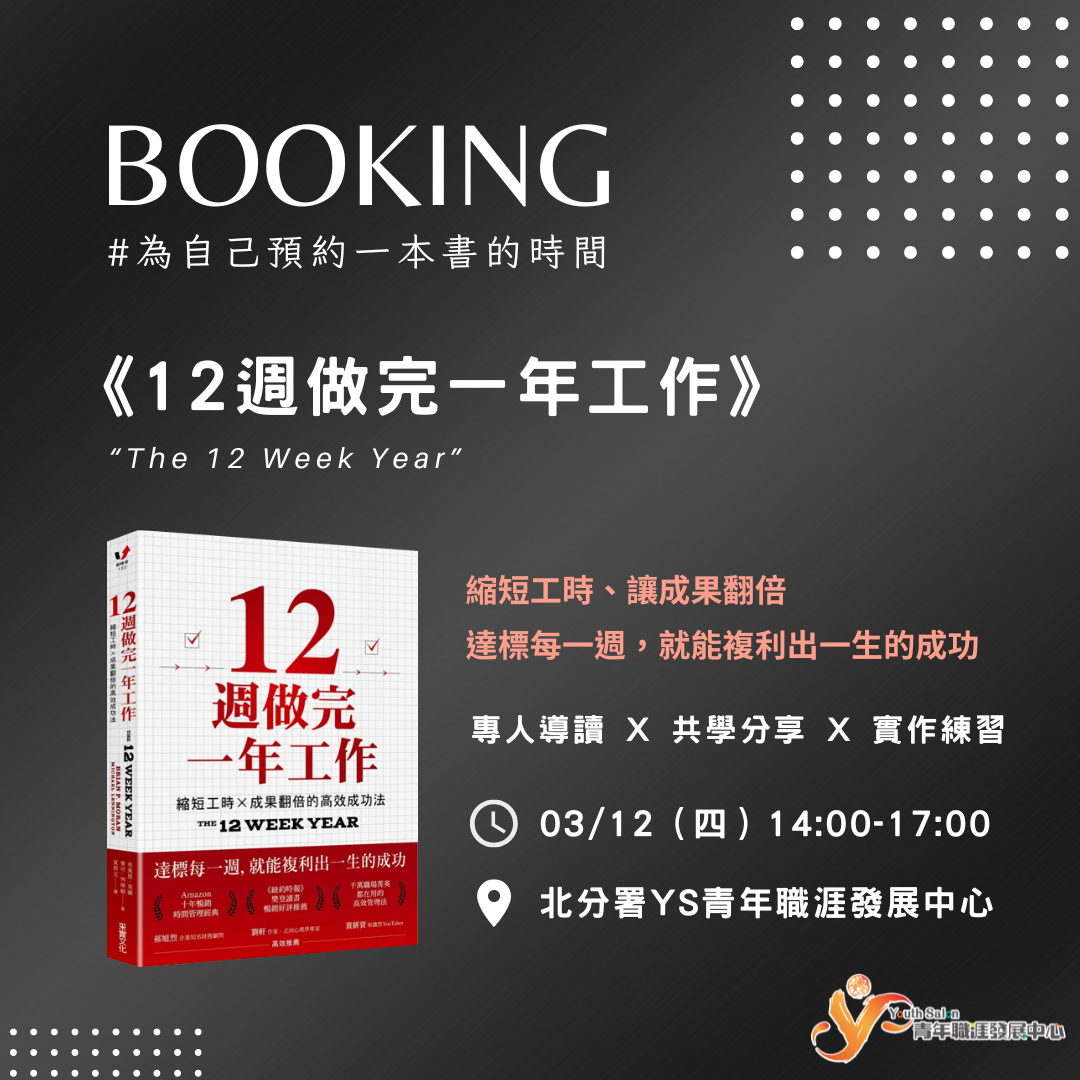 🔗貼心提醒:本次讀書會無需完整閱讀書籍,如手邊有《12週做完一年工作》,歡迎攜帶參加!