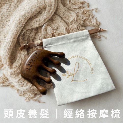 ▲課程成品:舒壓按摩油20ml&檀木頭療梳&品牌專屬絨布袋