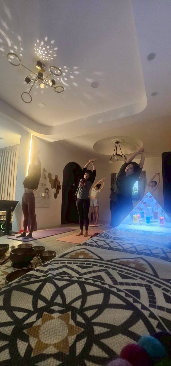 旅程中除了能體驗行星花彩、行星頌缽、行星銅鑼浴、並且有冥想、瑜珈融合活動中,