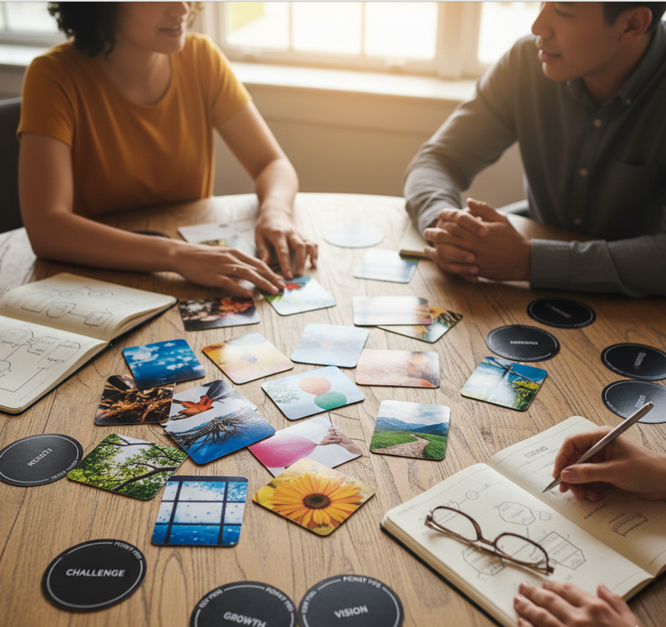 降低防衛,打開真實對話 以影像為媒介,讓人「不必對人,先對畫」,創造安全感,說出內心真實想法。