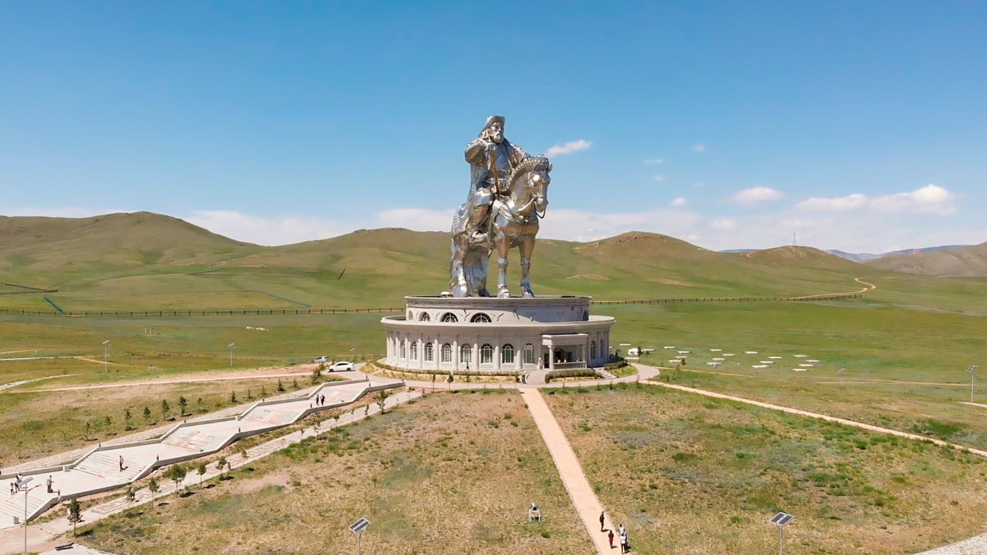 草原上一座座蒙古包散落在地平線上,風拂過帳篷邊緣,帶來最純粹的草原氣息。成群羊群移動、馬蹄聲在草地上迴盪,遼闊感無邊無際。途中走進 成吉思汗博物館,透過展示與故事更貼近這片土地的歷史與精神;騎馬、登上小丘俯瞰草原,在藍天與雲海之下,真正感受蒙古的壯闊與自由。