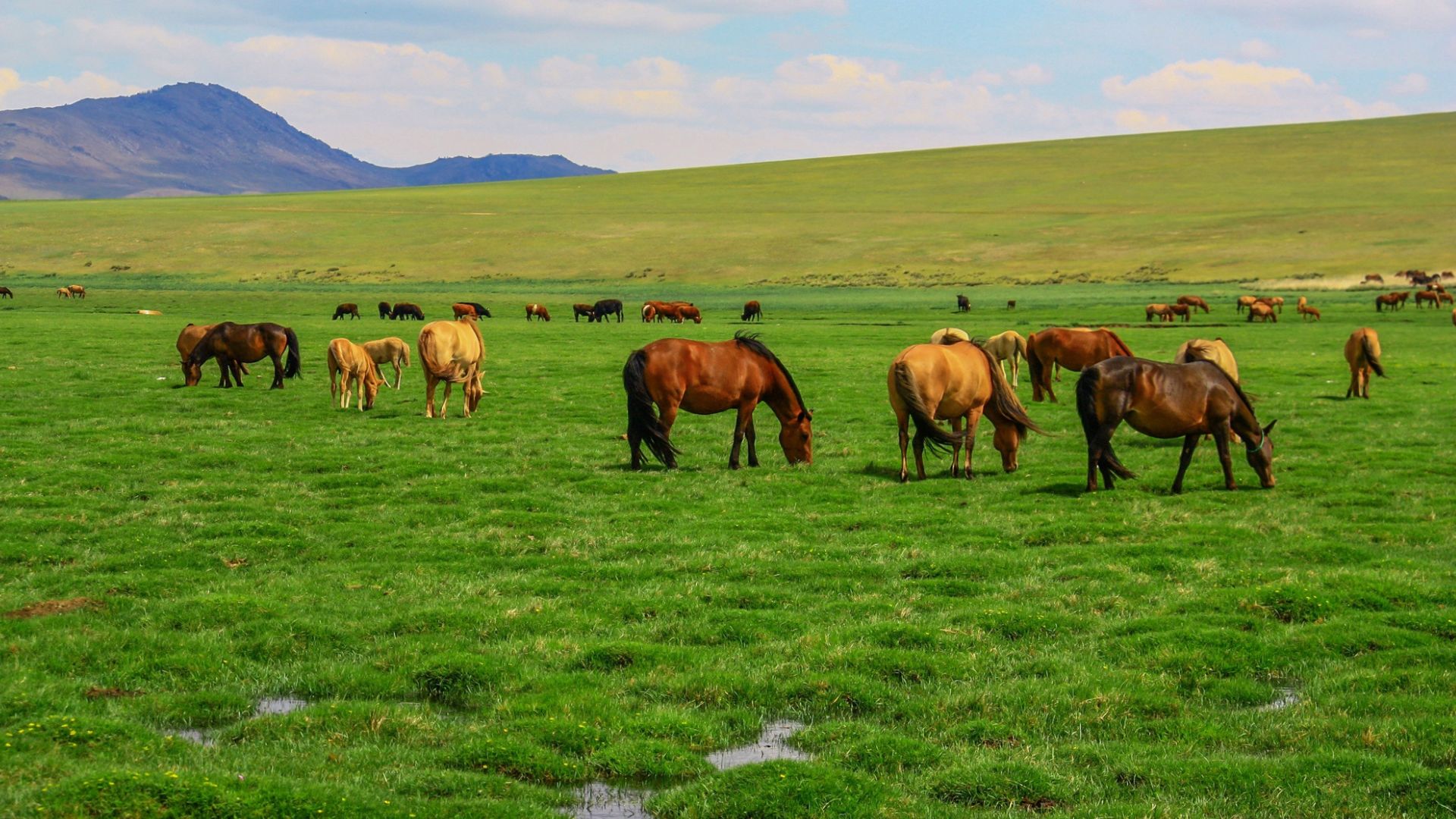 如果世界上有一個地方能讓人找到真正的寧靜,那一定是蒙古大草原。天空藍得像被洗過,雲朵低到像伸手就能碰到。風吹過草原,帶著柴火味與遠方馬群奔跑的聲音。這片土地沒有過度包裝,卻真實得讓人感動。
