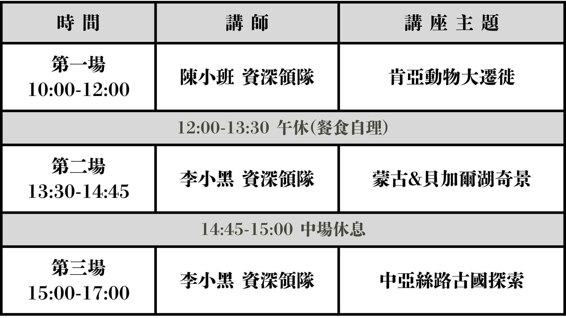 上、下午共計三場講座,可依興趣自由報名任意場次。