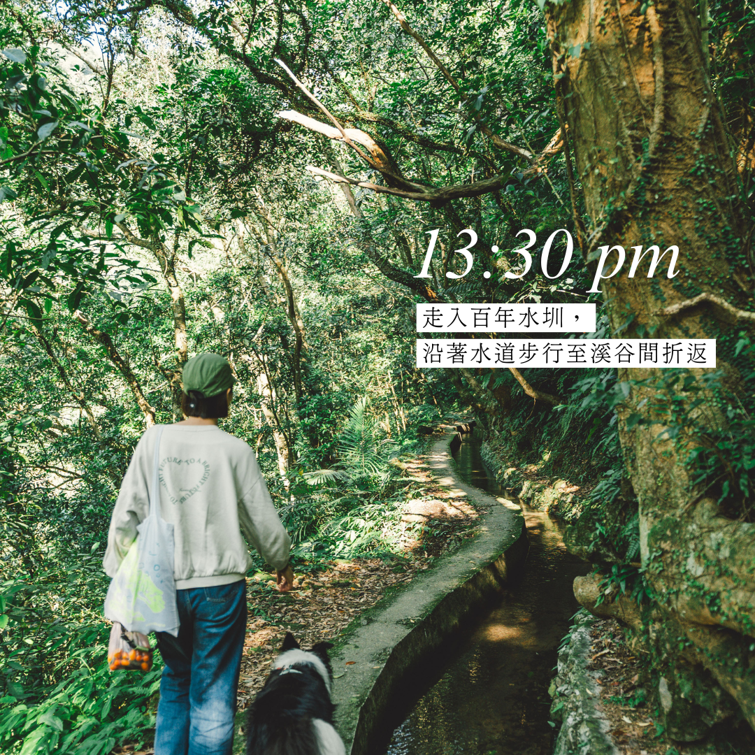 13:30 | 走入百年水圳,沿著水道步行至溪谷間折返。