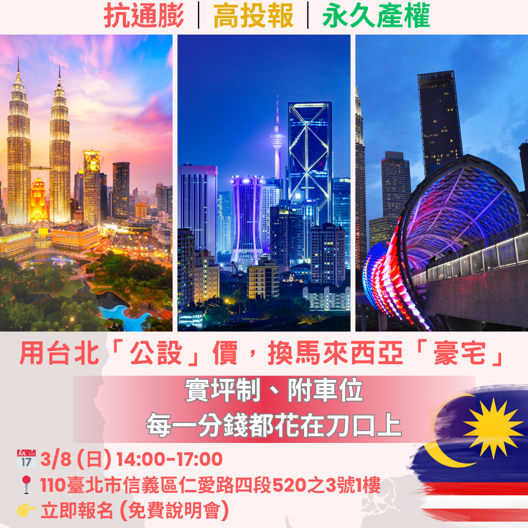 主題: 3/8 跨國財富論壇 - 馬來西亞新山房產說明會