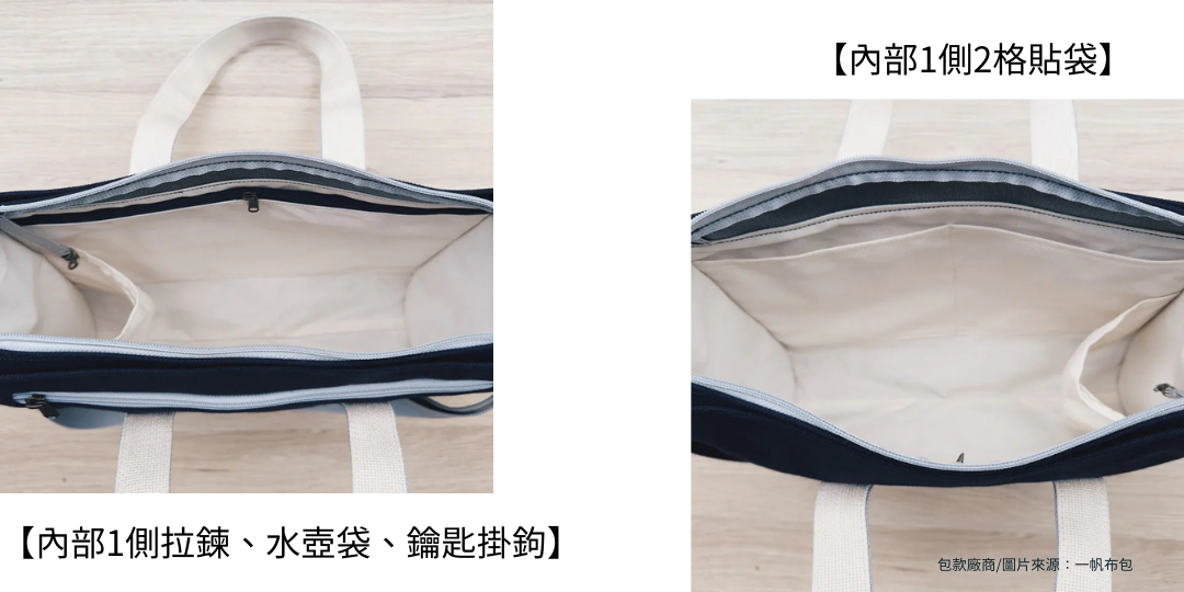 • 機能內層:配備拉鍊內袋、雙插袋,更貼心設計了專屬的水瓶固定空間與鑰匙掛勾,讓收納井然有序。