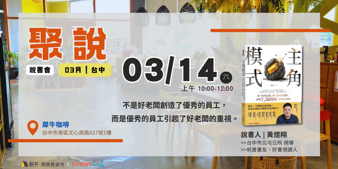【聚說 】說書會 | 台中 | 03月 - 〈主角模式〉