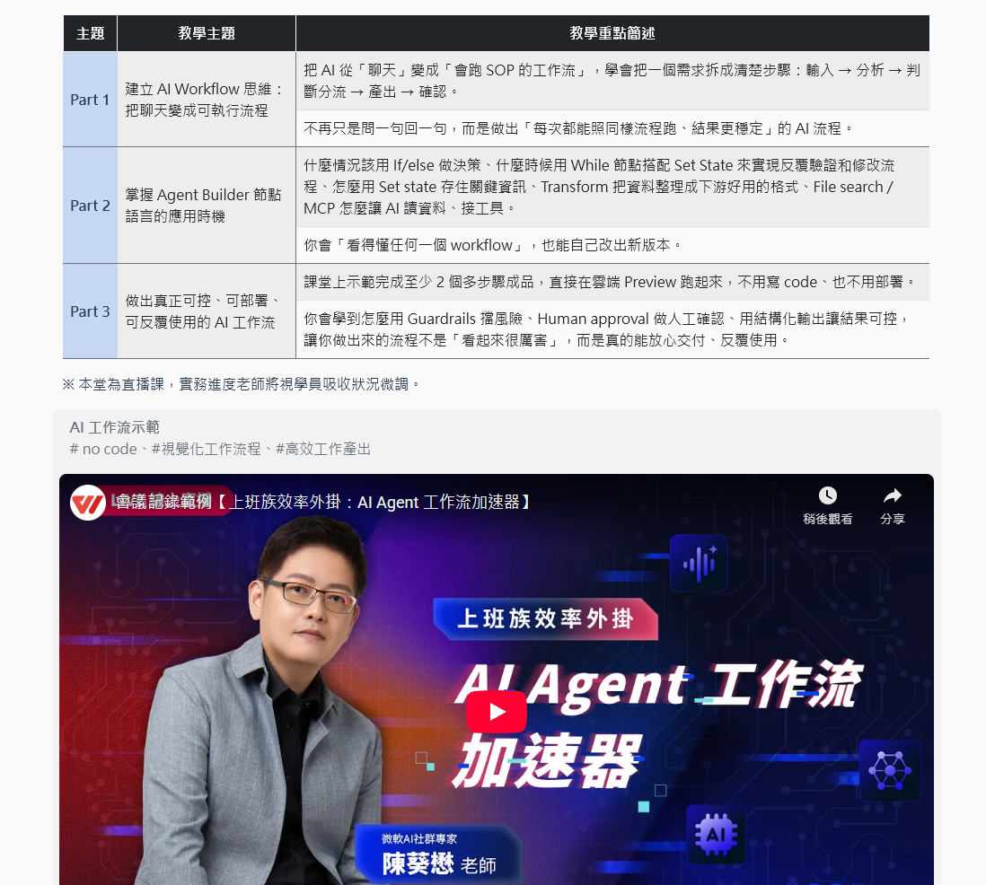 【2026最新AI線上講座】上班族效率外掛:AI Agent工作流加速器
