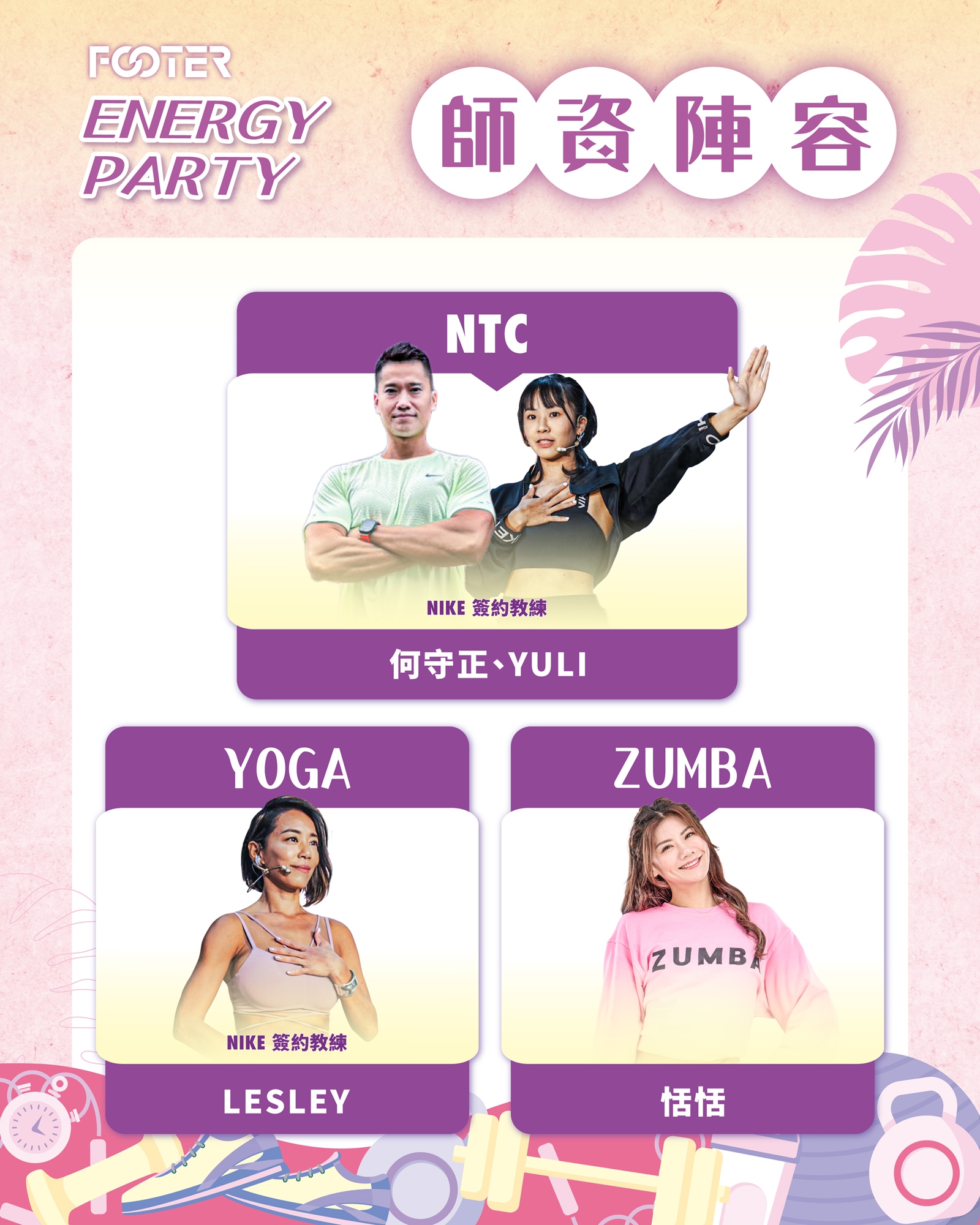14:50-16:50 | 120 MIN | ZUMBA.NTC.YOGA 活動 |