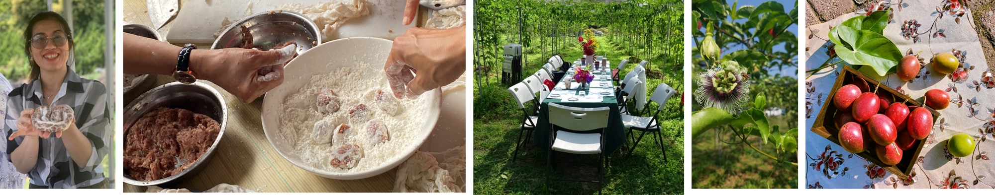 在百香果棚架下開窯用餐,品嚐親手製作的八寶丸與窯烤美味,感受柴火香氣與田野微風交織的用餐氛圍,特別安排在地音樂人史蒂芬灰(StephanGray)現場駐唱,以木吉他與溫潤嗓音,為用餐時光增添療癒的音樂氛圍。