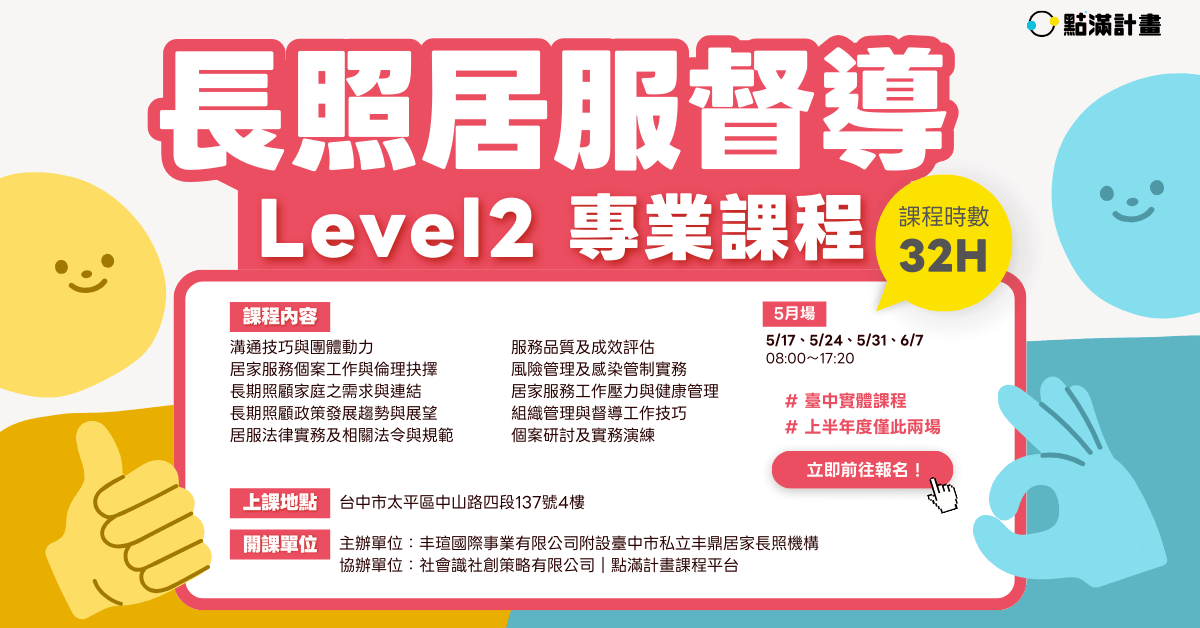 【台中實體課程】長期照顧居家督導人員專業課程(Level II)