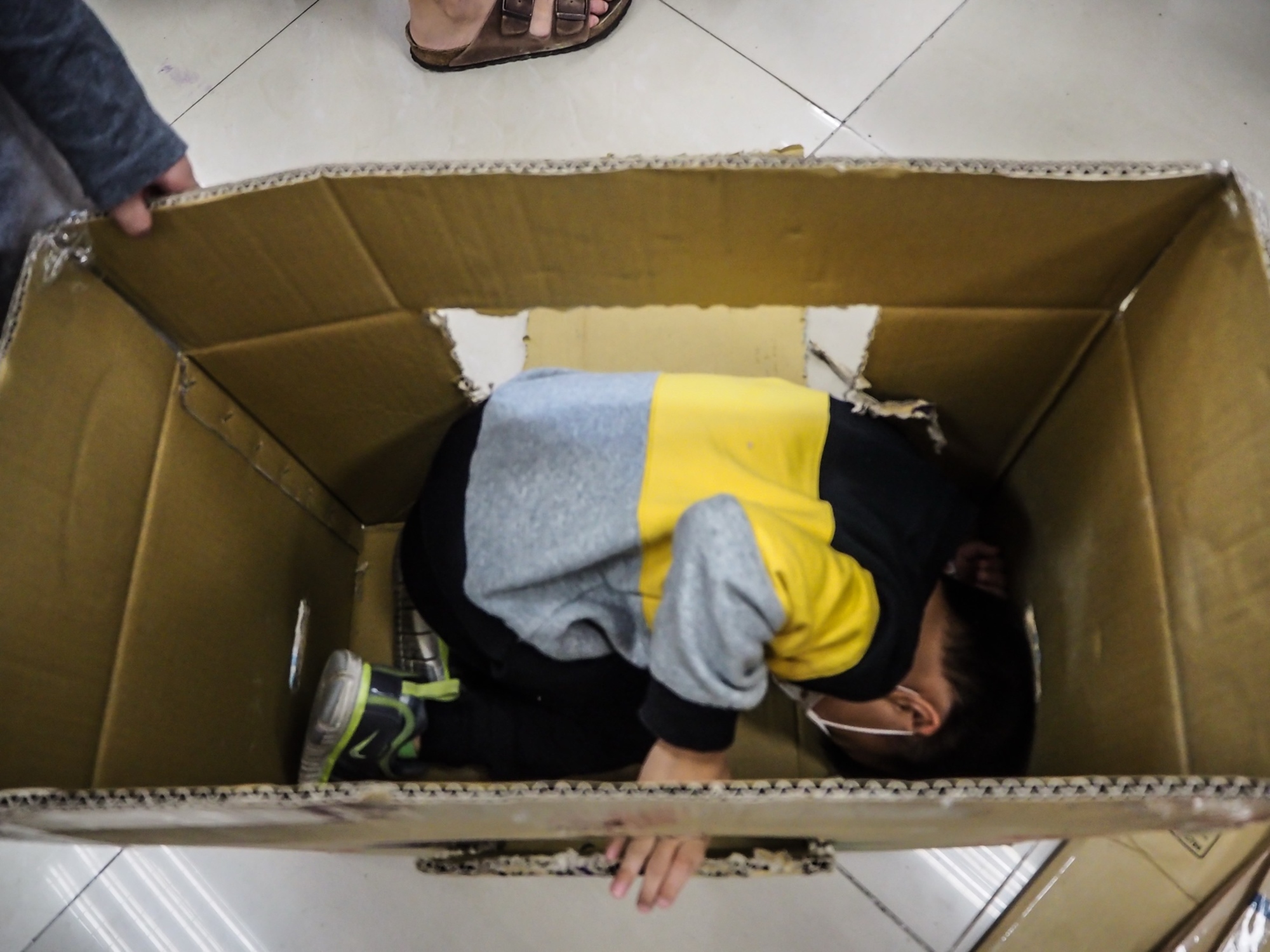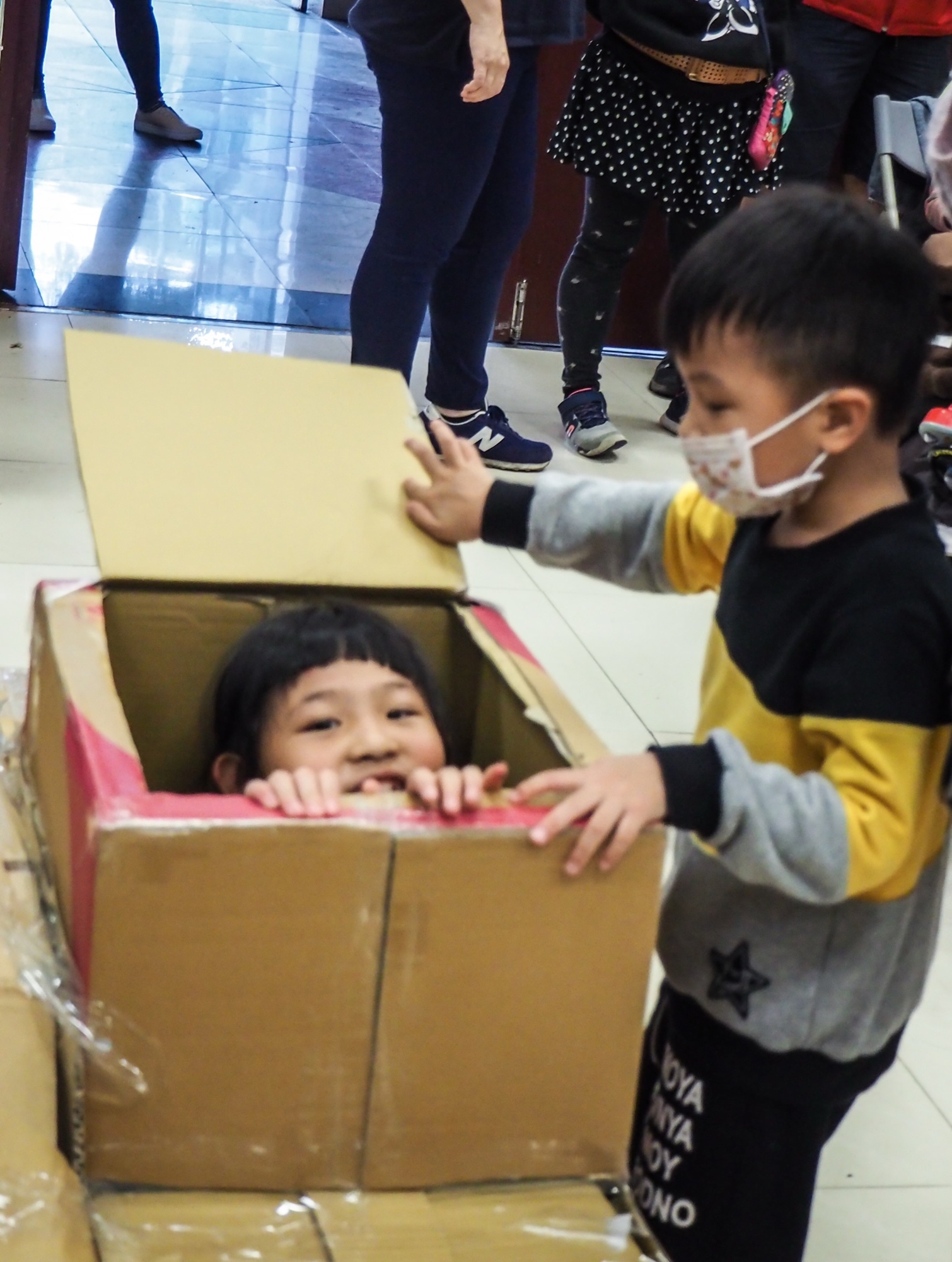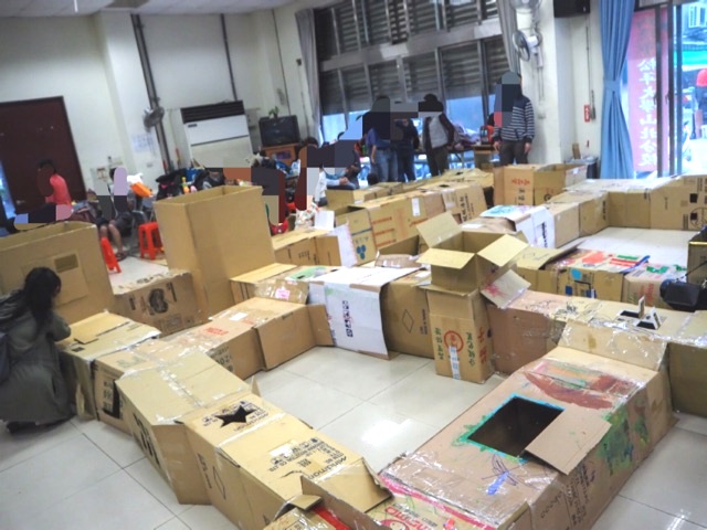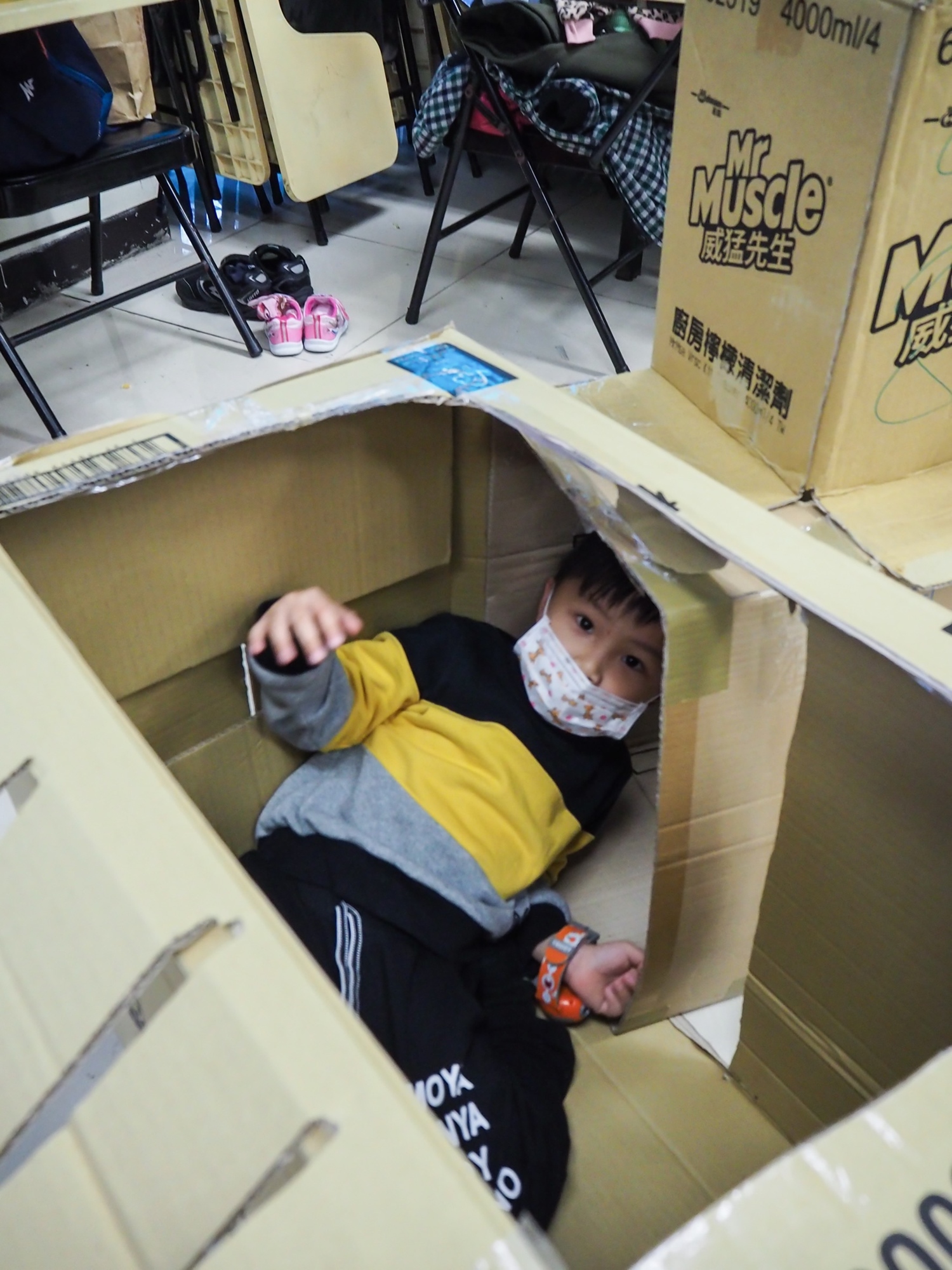 大人主要在紙箱區佈置紙箱趴